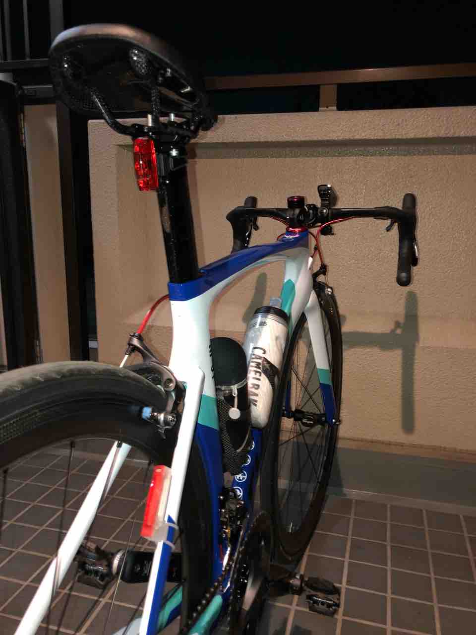 ライト移設して、サイコン移設して、ベル付けて、あぁ乗る前からちょっと面倒。