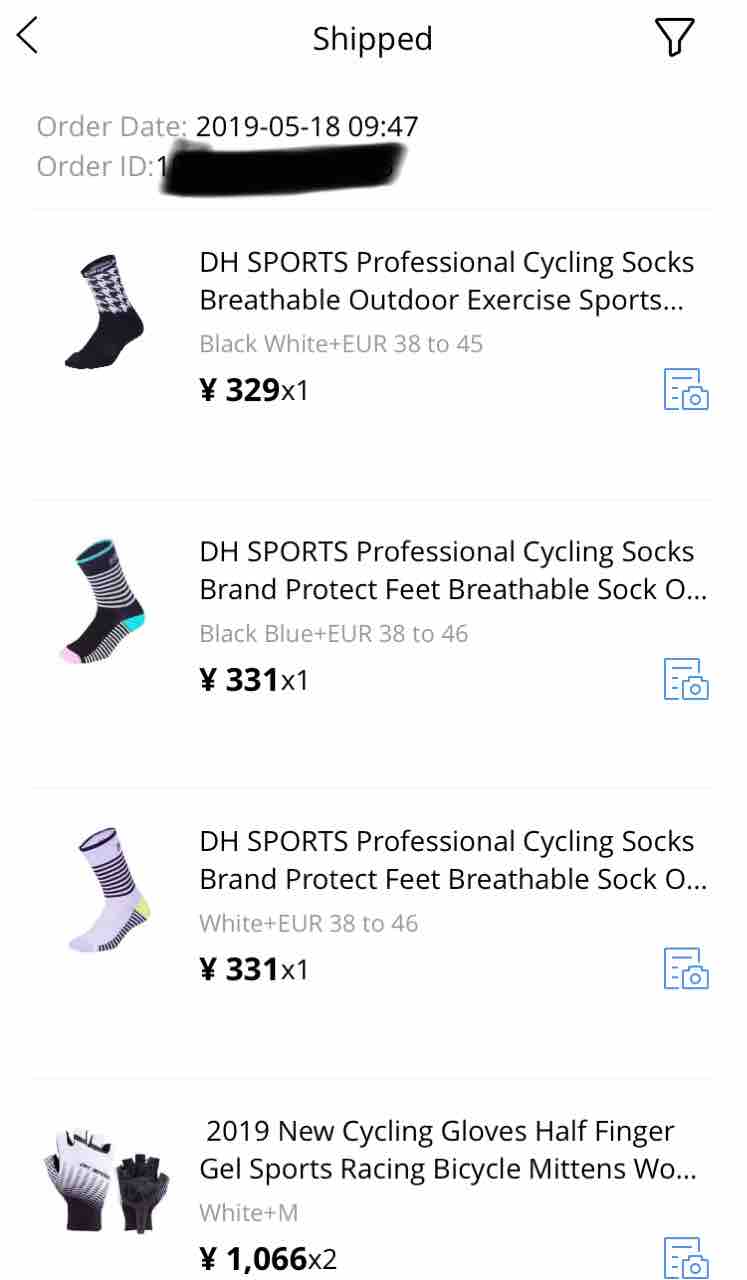 上:ZWIFT用にAliExpressで購入した激安のグローブとかソックス。使えるのかは不明。