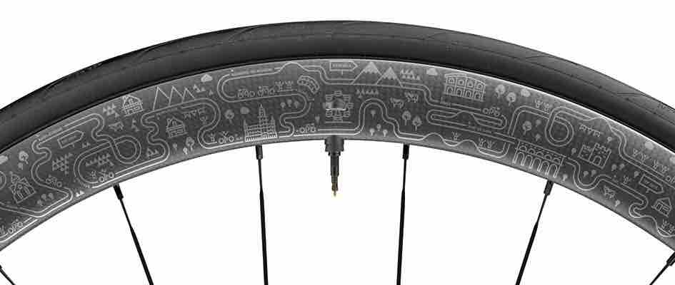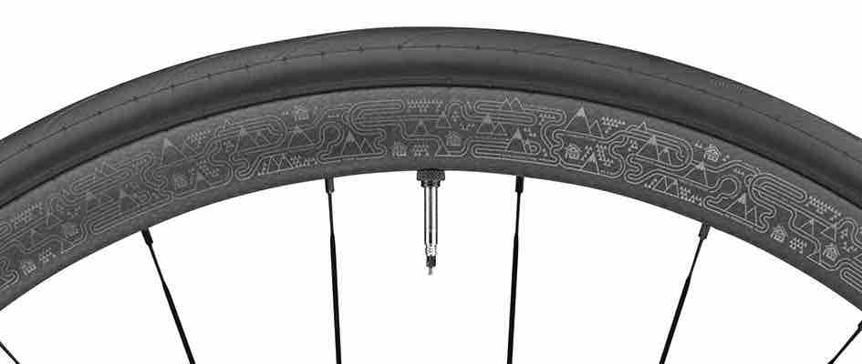 タフで信頼性もある軽量クライミングホイール。のグラフィックはやはり山だらけ。