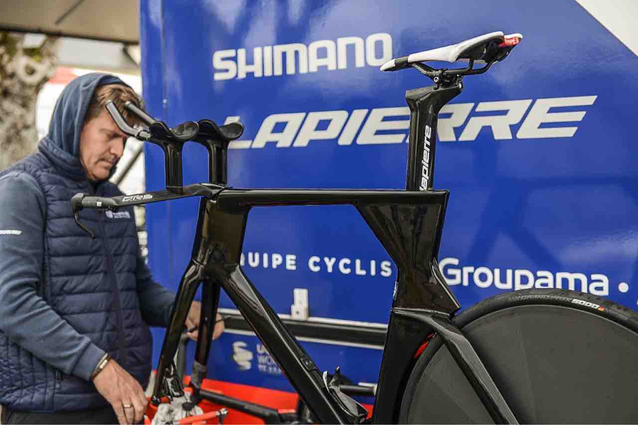 C'est aujourd'hui la première sortie en compétition de notre nouveau vélo de contre-la-montre, le @Lapierrebikes Aerostorm Disc. La machine, qui attire beaucoup de curieux, sera utilisée par Stefan Küng et Thibaut Pinot. #ParisNice pic.twitter.com/dE8Vf4lUSA