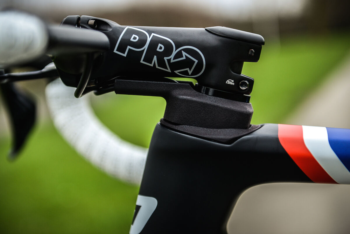 代わりにケーブルガイドのようなものを利用して標準のPROのステムの下でハンドルバーから延びるケーブル配線をきれいにそろえている。