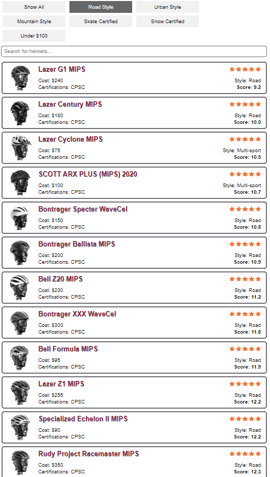 ヘルメットが頑丈かどうかではなく、加速度センサーを何ヵ所かに設置して、頭が受ける衝撃の少なさによるランク付け。