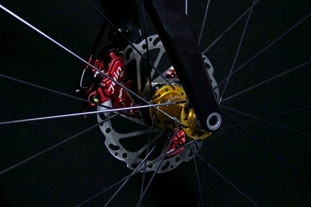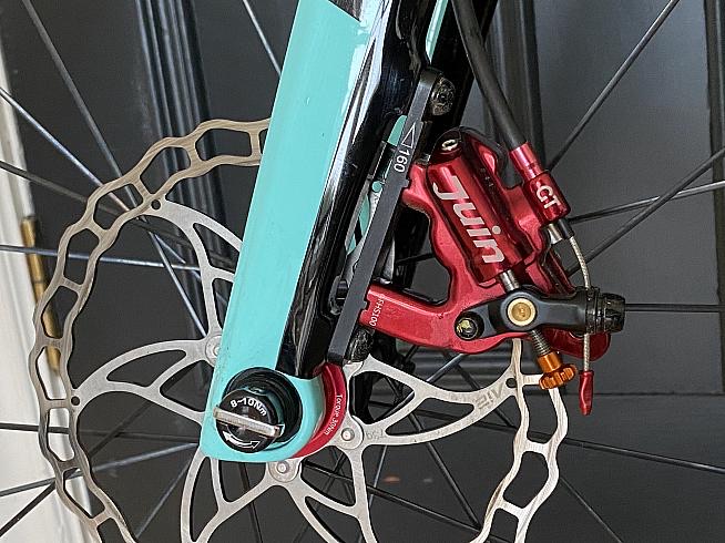 ブレーキはJuintechのYokozunaのケーブル引きの4ピストン油圧と書かれております…が、