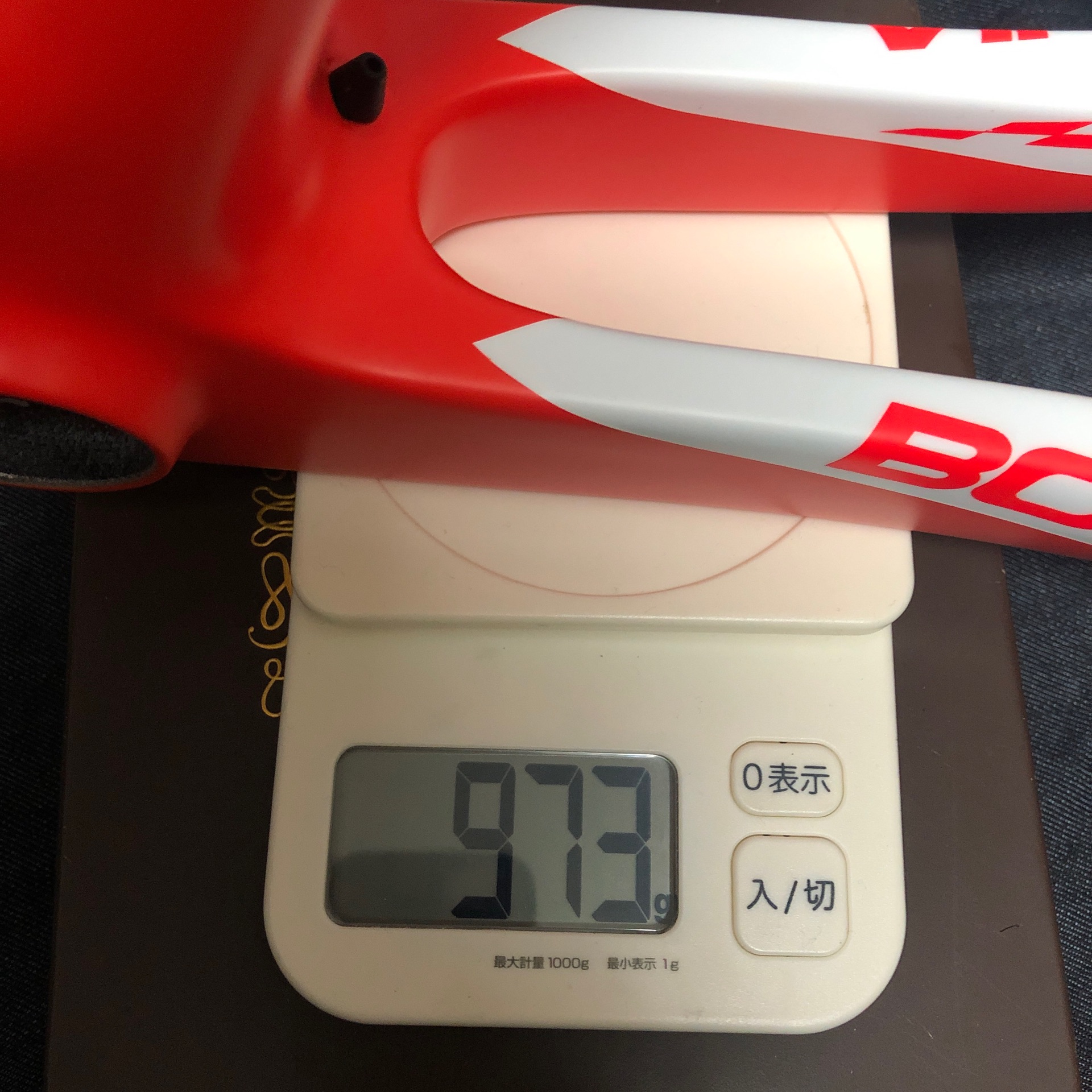 カーボンの黒字を隠す量の白の上に赤塗ってさらに色々なロゴ重ねてるんだから、塗装で重くなっている可能性もあります。