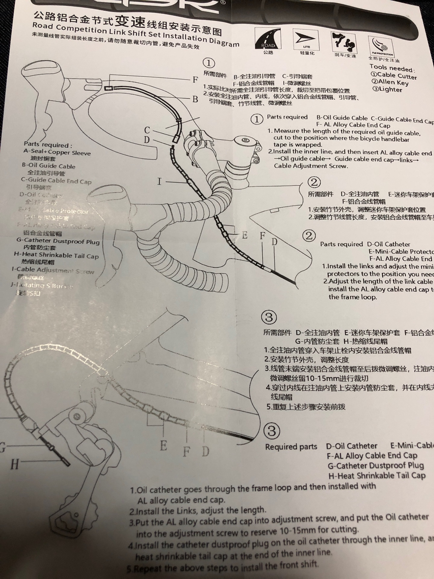 思ったよりは軽いですが、今回はハウジングにリンクアウターという軽いけどクッソめんどくさいケーブルを使いました。