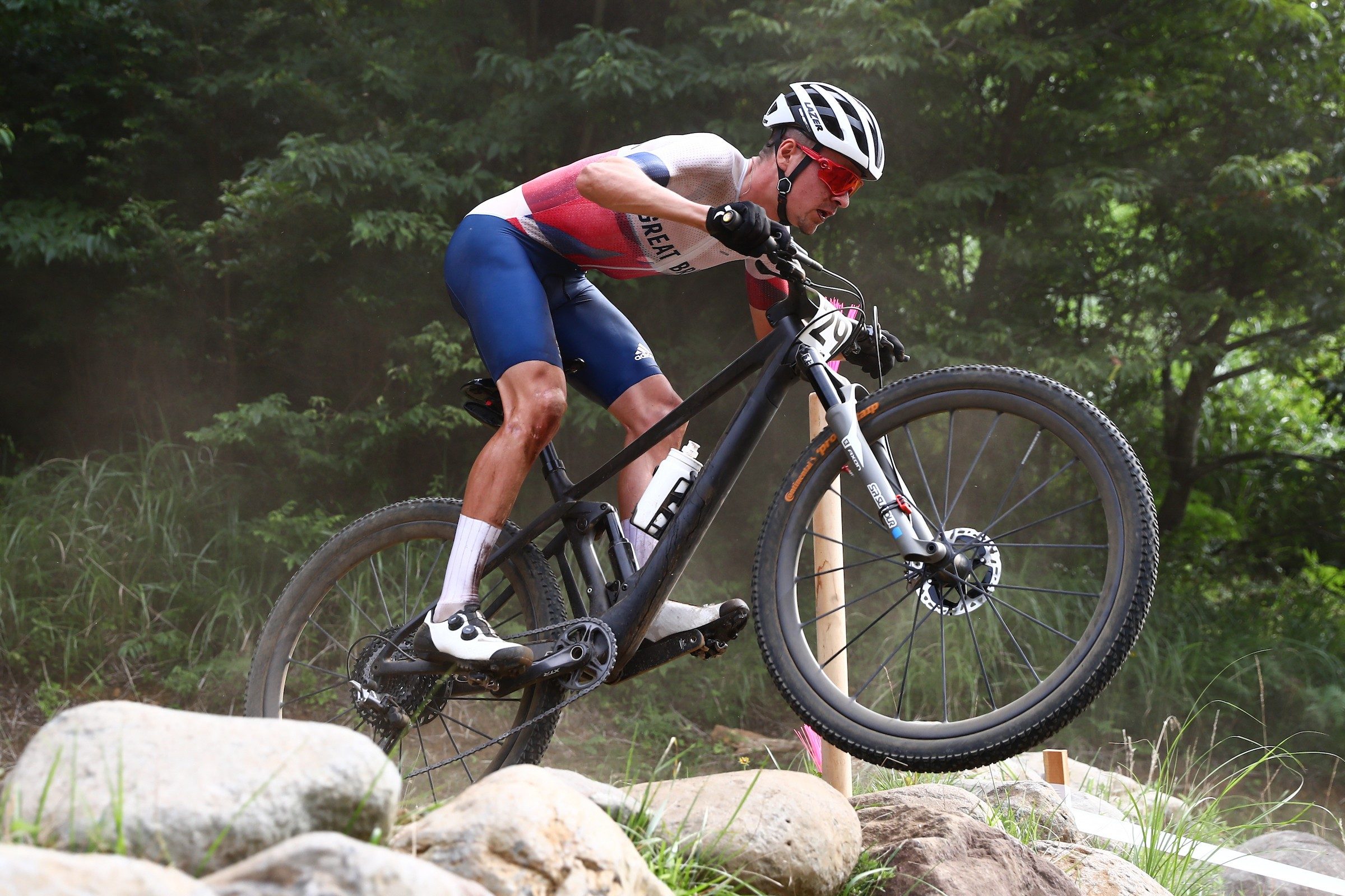 東京オリンピックで金メダルを獲得したトム・ピドコックが使用しているバイクのフォークに装備されていることでも話題を呼んだSR SUNTOUR