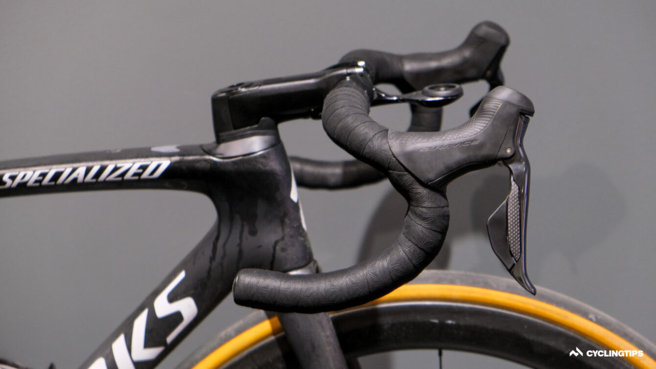 アラフィリップは昔からエアロハンドルを使わず、ノーマルなハンドルバーを使用