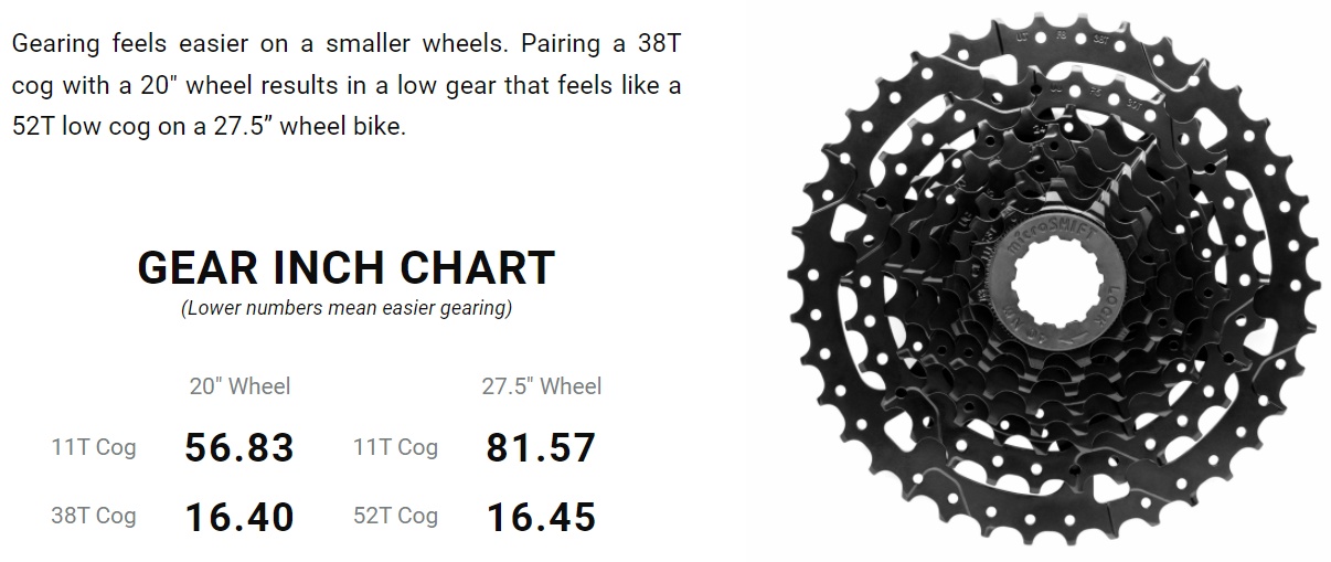 microSHIFT曰く、27.5インチの52tと20インチの38tは感覚的に変わらないとのこと。